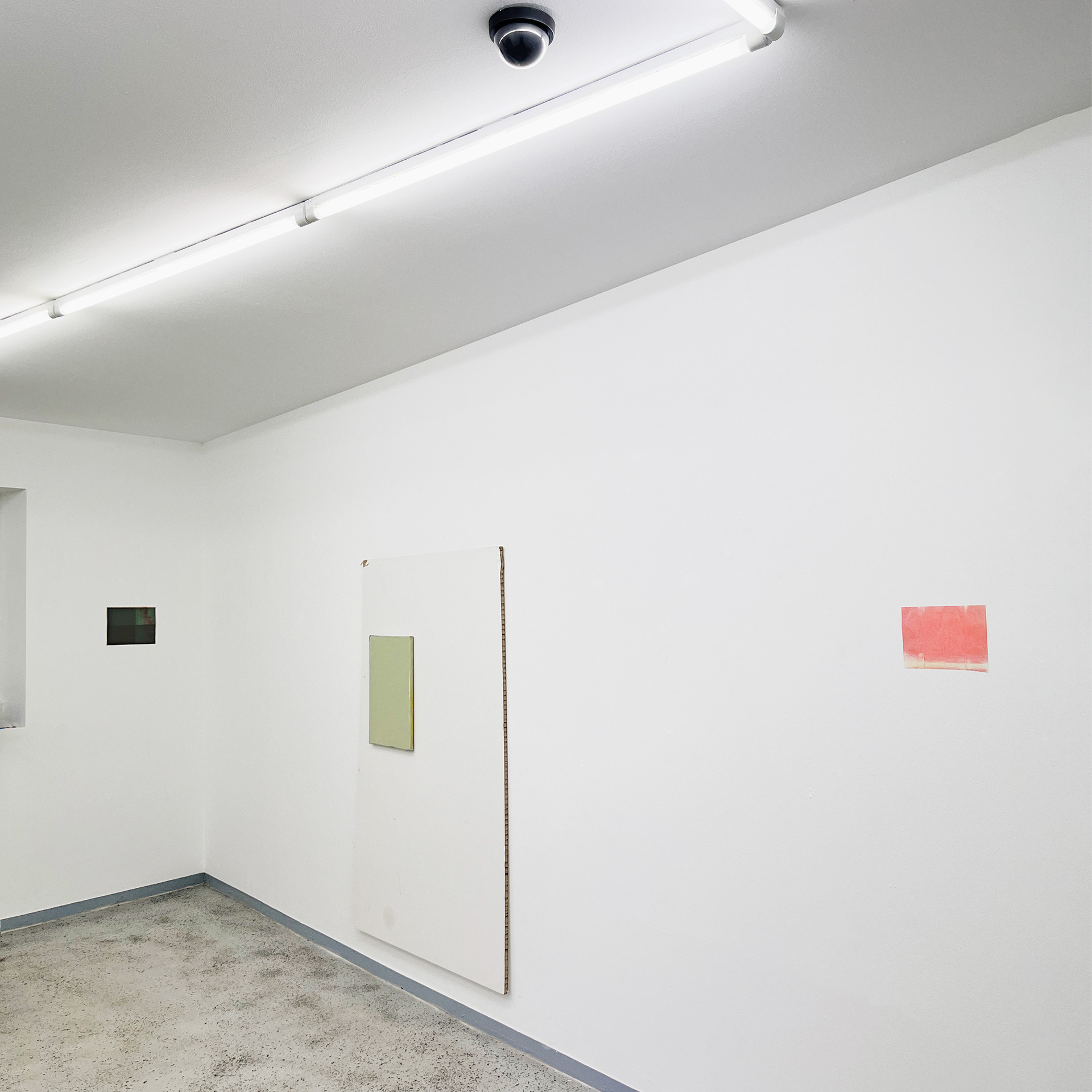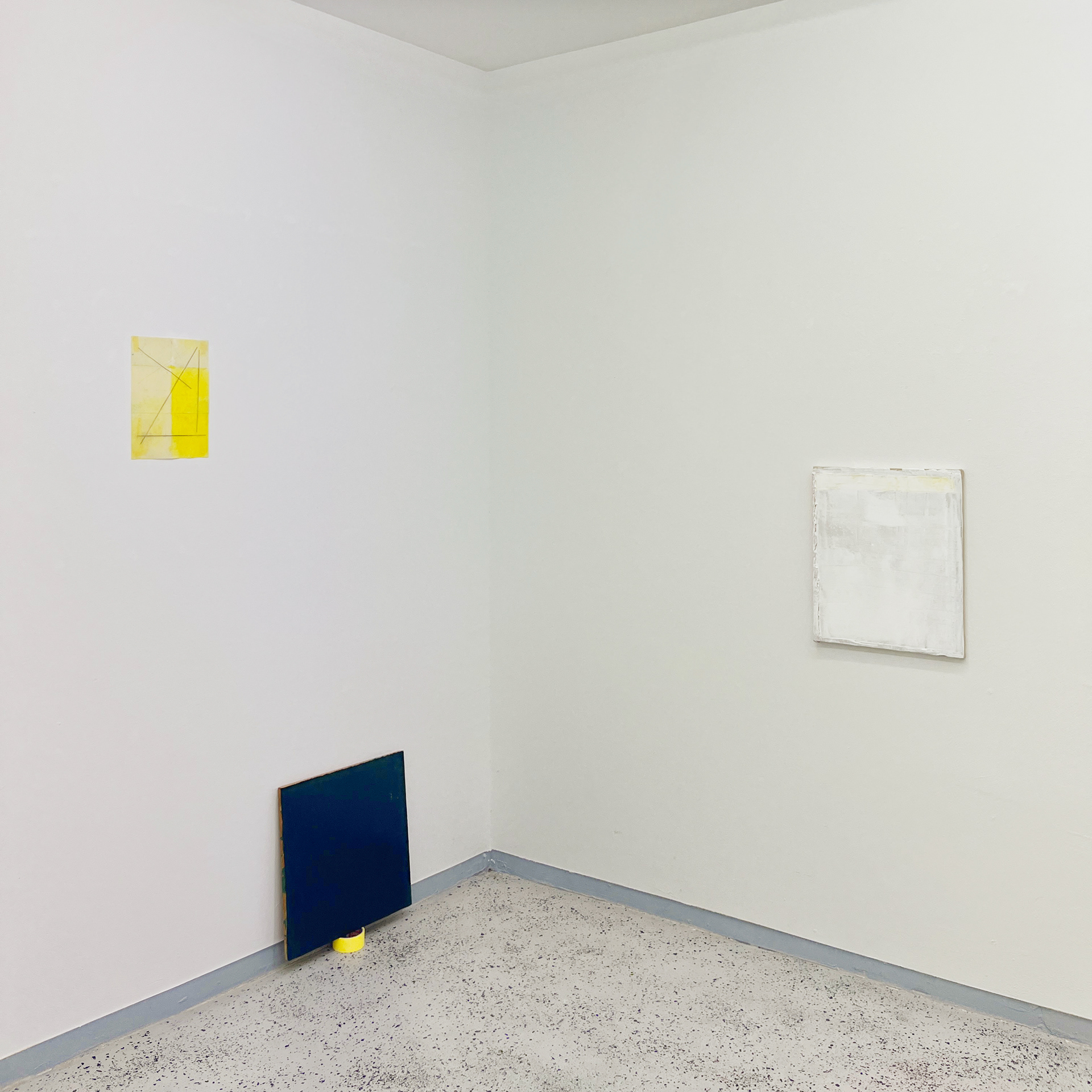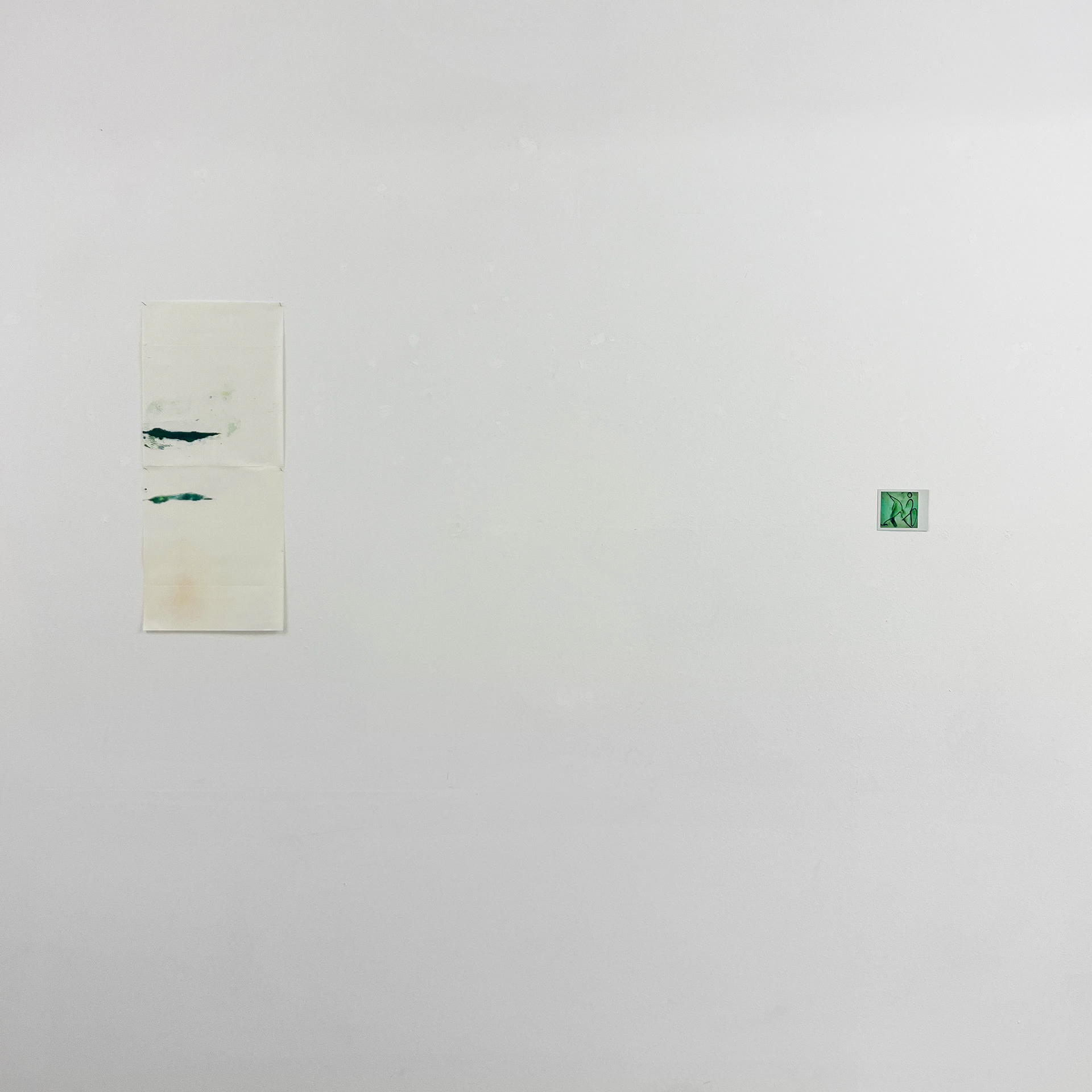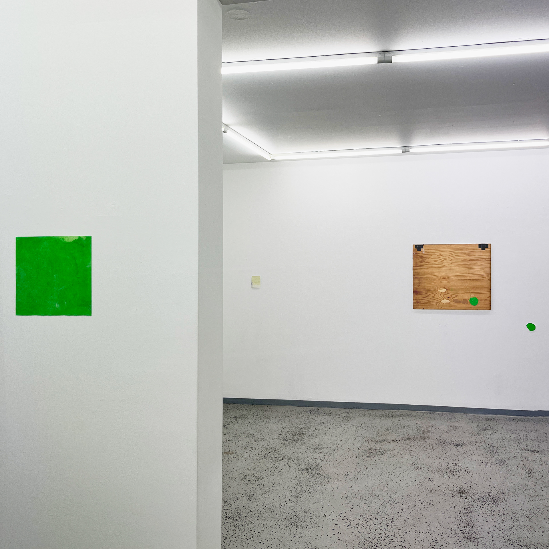 Thomas Buts: Wachs auf Papier + Wachs, Tape auf Holzplatte, 2025