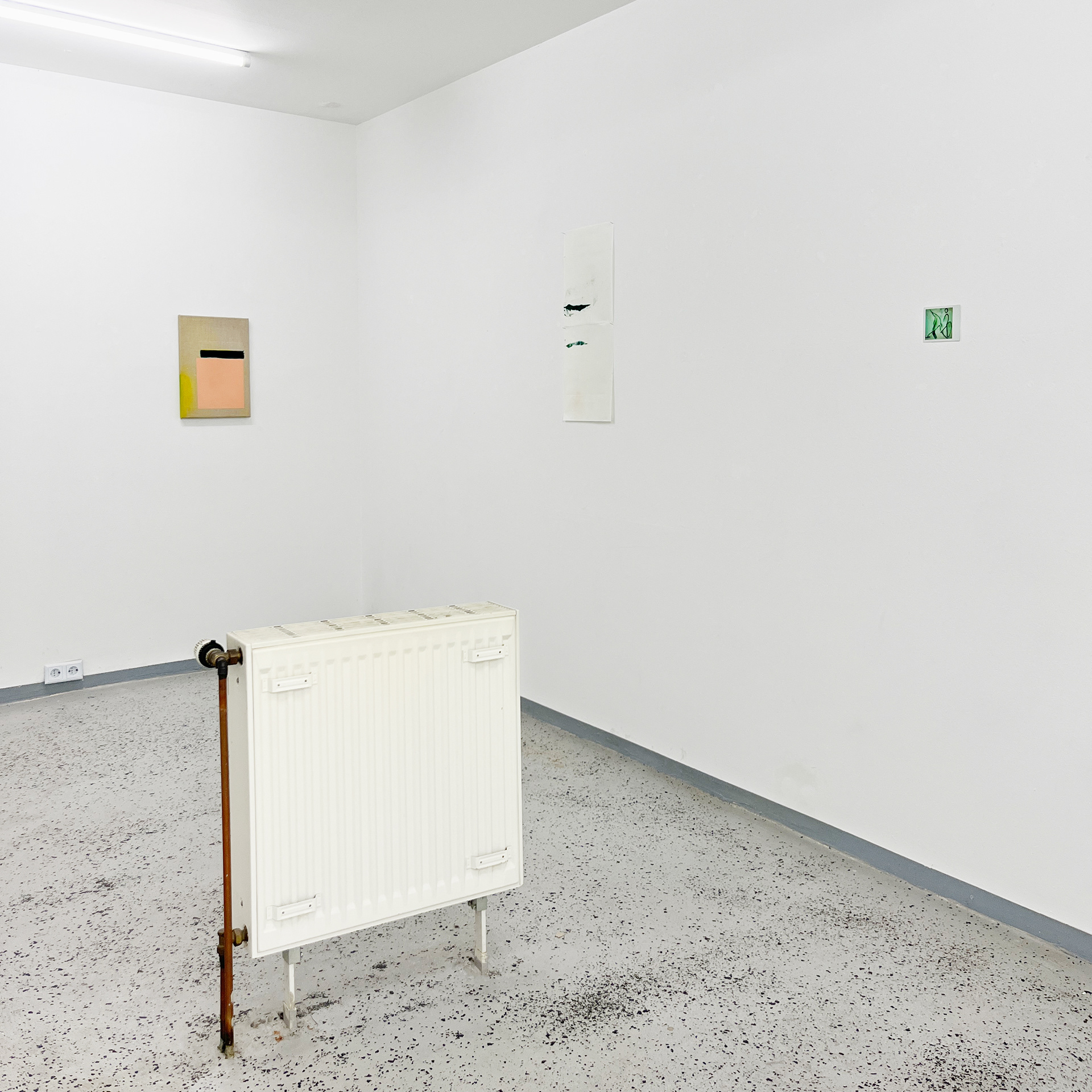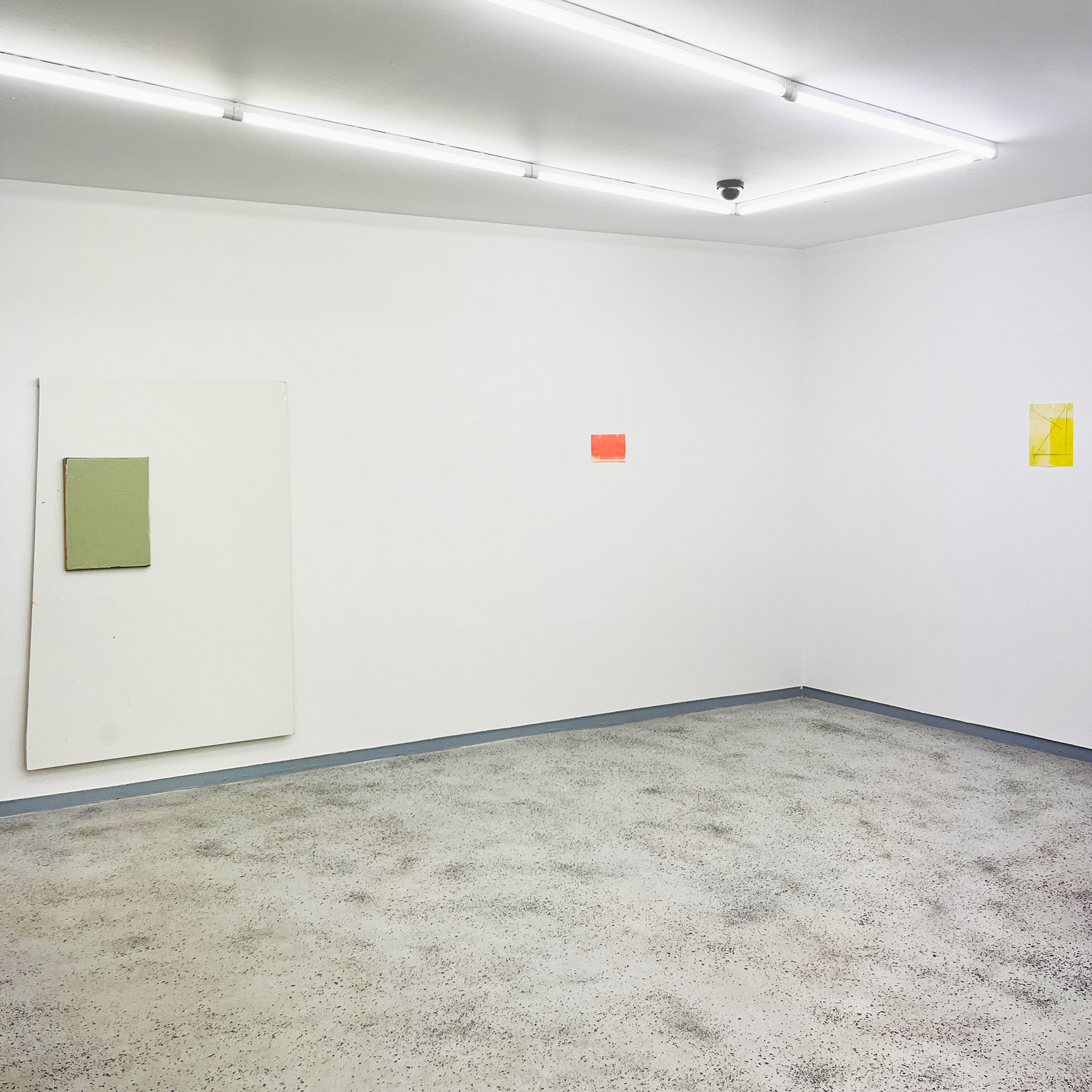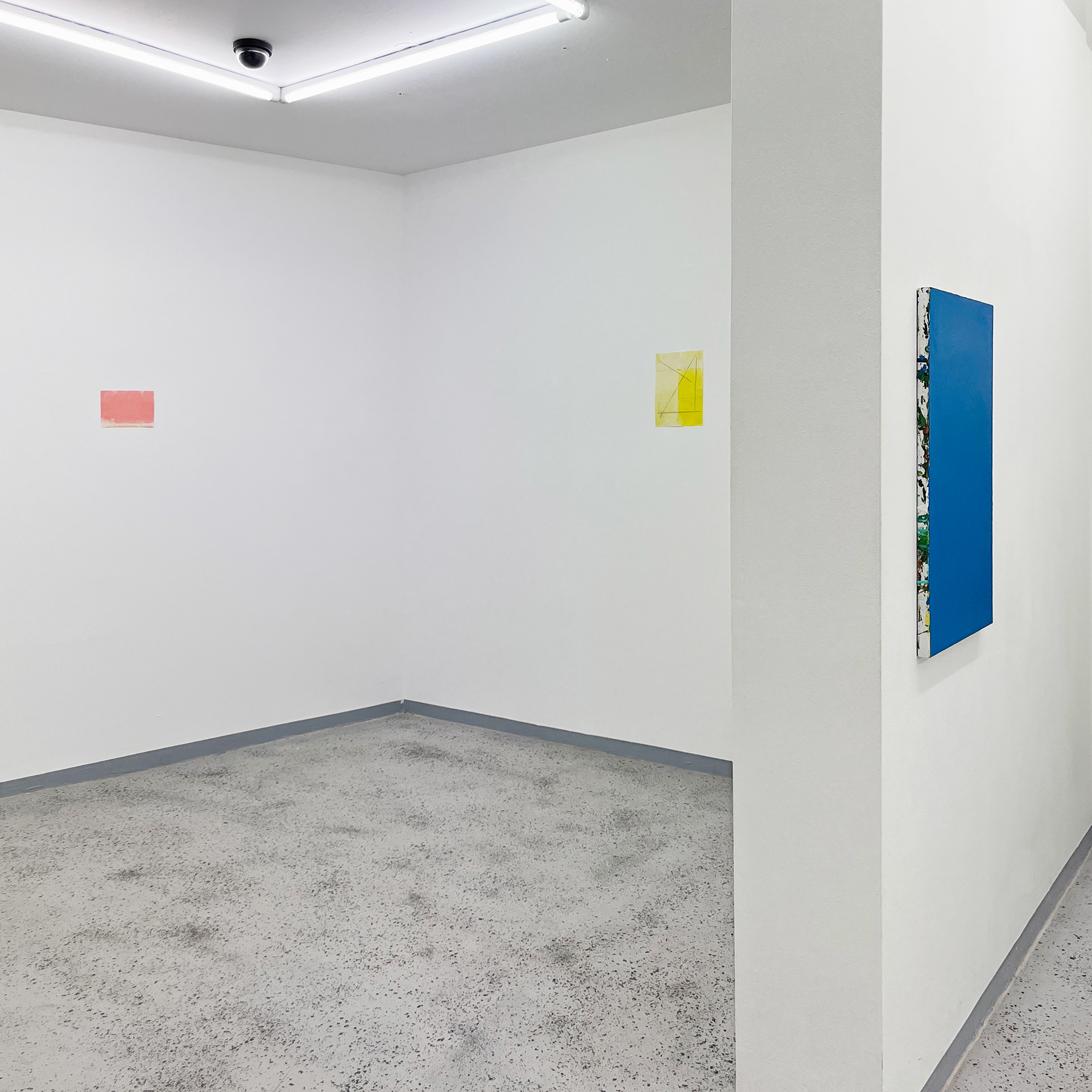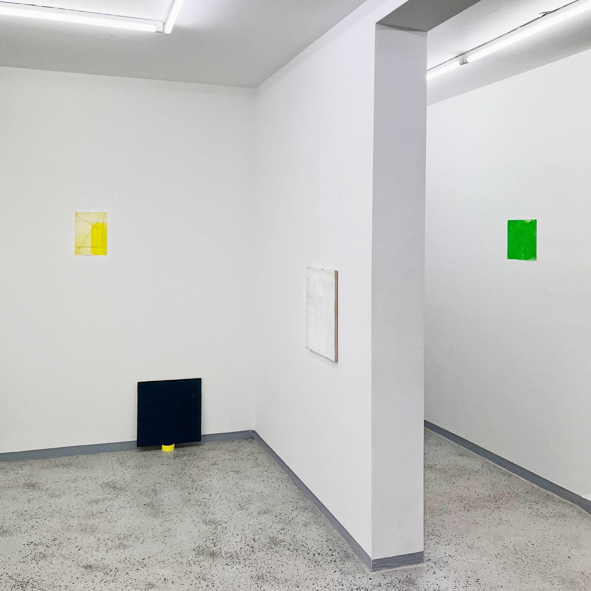 Thomas Buts: Wachs auf Papier + Wachs, Tape auf Holzplatte, 2025